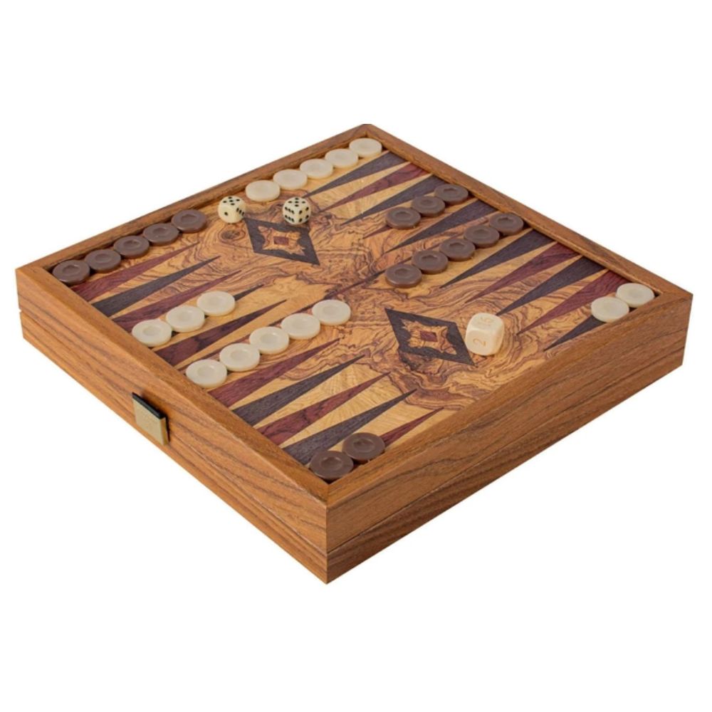 Manopoules – Chess/Backgammon – Olive Burl design in Walnut replica wooden case